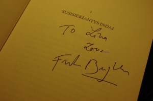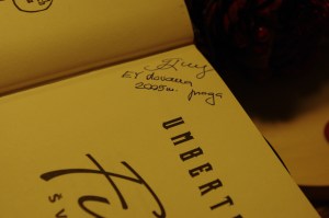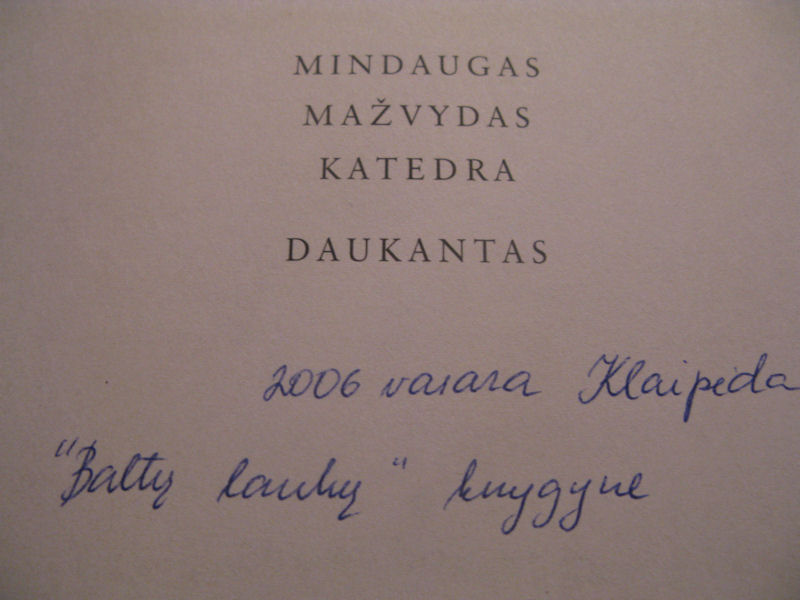 Patinka, kai pats rašytojas arba rašytoja suraizgo porą žodžių (Čia a.a. J.Ivanauskaitė pasirašė savo “Raganos ir lietaus” švediškajame leidime)