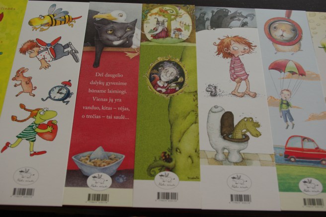 Kadangi ketvirtadienį kukulių bibliotekėlė labai praturtėjo leidyklos Nieko rimto (piešinukas viršuje -iš leidyklos puslapio) knygutėmis, tai mielos leidyklos merginos leido man pasirikti skirtukų, kurie tokie pat gražūs, kaip ir jų knygutės. Keletą išrikiavau čia: