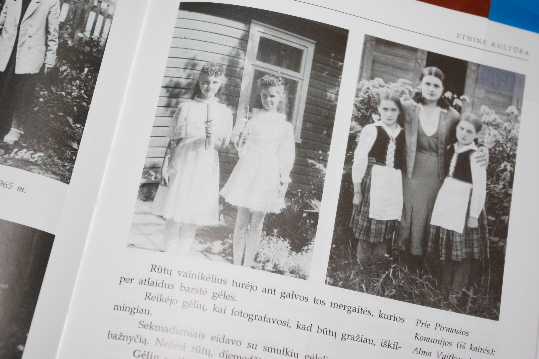 Taigi, kai vieno vizito pas močiutę metu pamačiau tokią storą knygą iš karto susidomėjusi puoliau ją vartyti, tuo labiau, kad močiutė vis burbėjo, kad knygos sudarytojai labai jau prie jos pristoję, nes ji turinti šviesią galvą, daug prisiminimų (ir tinginčių prisimint kaimynų, kurie visi sudarytojus pas močiutę siunčiantys) ir nuotraukų. Dažnai su tokiomis knygomis elgiuosi kaip su telefono knyga – atsiverčiu gale vardų suvestinę ir žiūriu, ar daug bendrapavardžių yra. Dažniausiai daug nebūna, nes pavardė tikrai nėra Kazlauskaitė ar Jankauskaitė (o tarp žiurkių tokių pavardžių ir nebūna 🙂 ). Na, matau sąvade, kad yra tokia Žiurkytė Žiurkauskaitė, mano bendravardė ir bendrapavardė. Aišku, verčiu nurodytą puslapį ir… randu save! Aha, ta šventa mergaitė lietuvaitė trumpiausiu sijonu visam puslapy tai aš (malonu susipažinti 🙂 ).