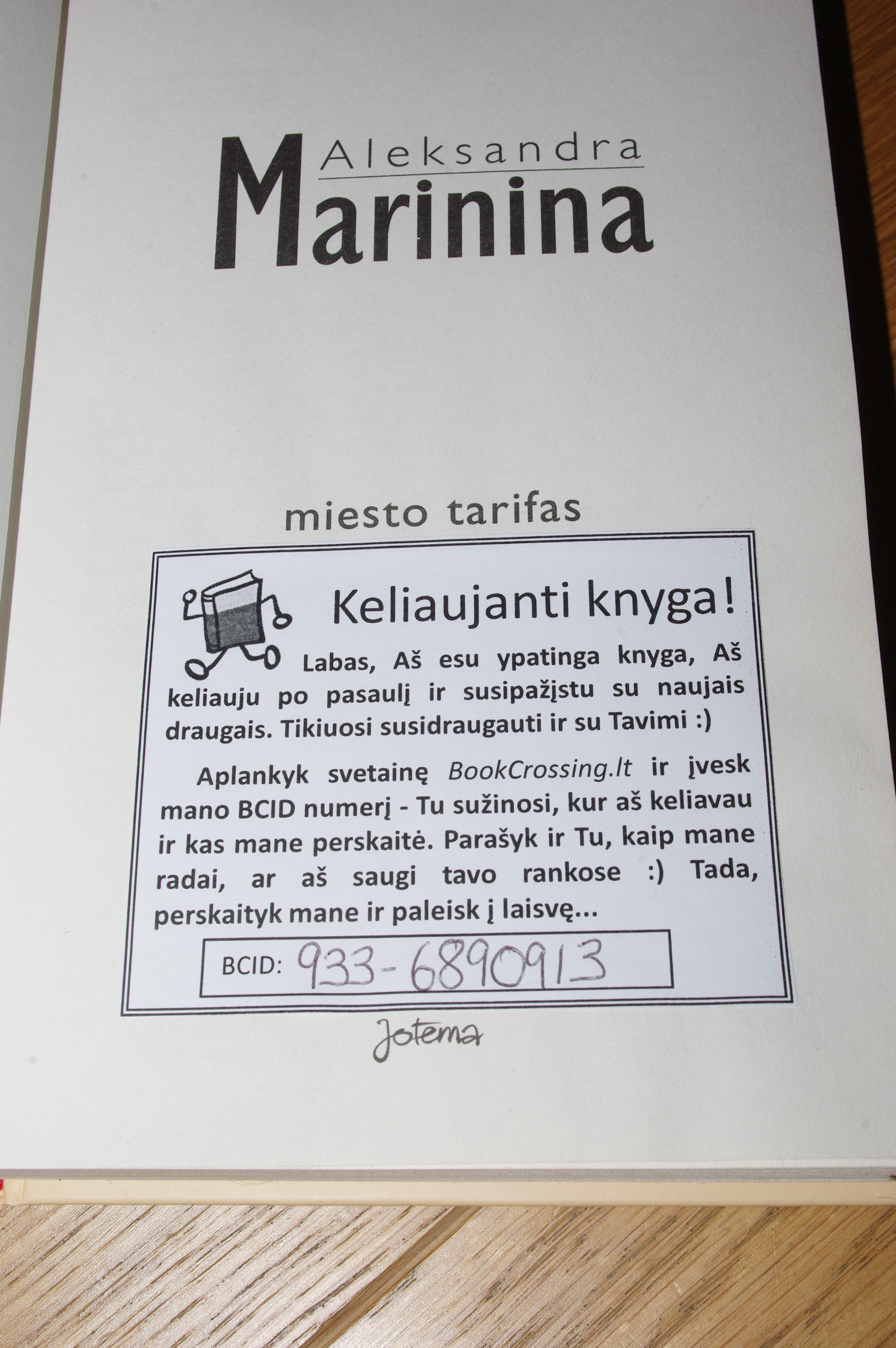Iš lentynėlės pasiėmiau dvi knygas. A. Marininos Miesto tarifas ir vieną kukuliui apie traukinuką. Štai kas Marininos puslapyje internete: