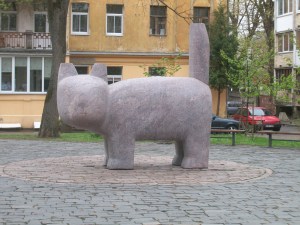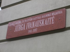 Vieną dieną vaikštinėdama po senamiestį pamačiau tokią atminimo lentą ir perskaičius pavardę joje labai nustebau. Nesitikėjau tokios perskaityt. Apie tą lentą kada nors vėliau, o šį kartą, eidama į parduotuvę pastebėjau, kad jau kabo atminimo lenta ant namo, kuriame gyveno Jurga Ivanauskaitė. Toj pačioj gatvėj, kiek tolėliau, aukštai iškėlęs uodegą Jurgos skverelyje stovi Jurgos katinas. Gražiai sutvarkytas sverelis, tik kad aplink skverelį aplinka tokia nelabai, o ir suoliukai nekokią publiką traukia… Bet, tikiuosi, kad čia tik šiandien. O dabar – lenta ir katinas 🙂