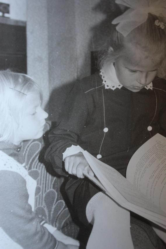 Mokyklos pradžios proga mano mažoji sesė (ir tėveliai) man padovanojo V.Miliūno knygą "Evalduko metai". Ta su kaspinu tai aš, o ta mažutė, tai mano mylimoji sesė