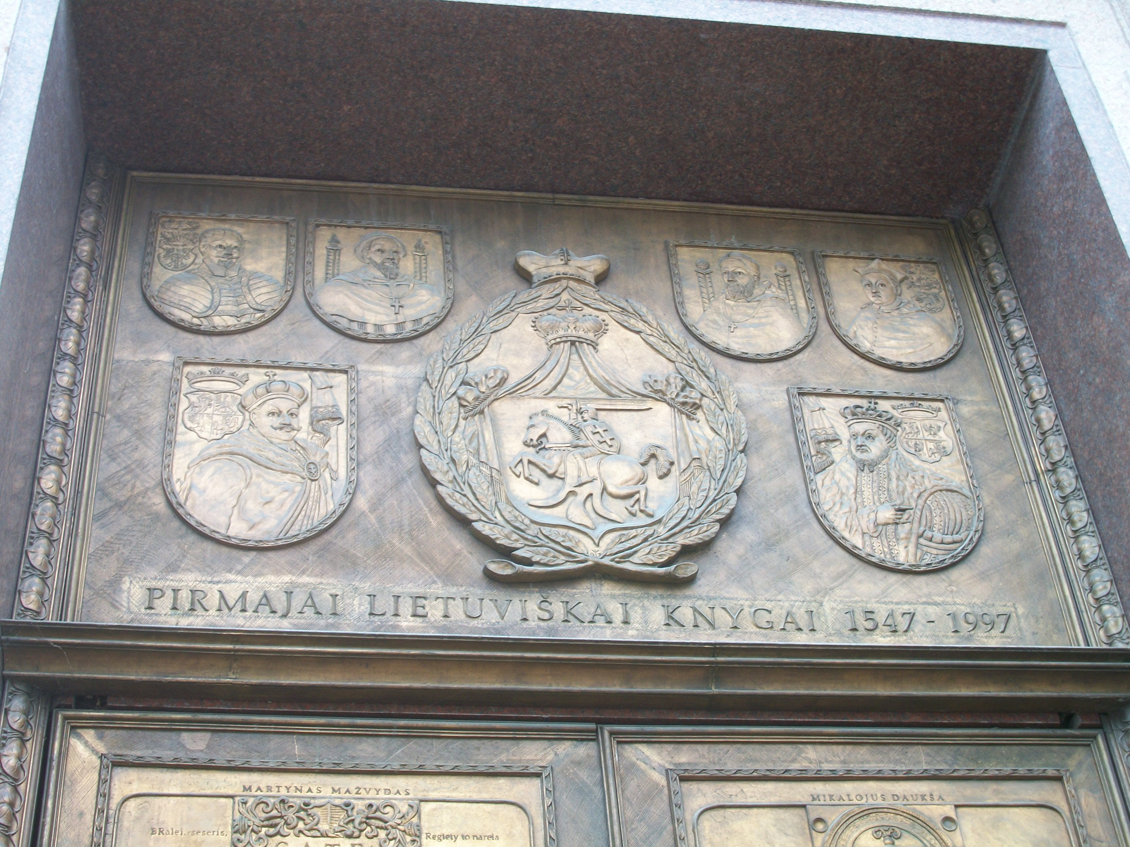 Vilniaus Universitete yra tokios gražios durys, skirtos lietuviškai knygai. Pirmajai ir tikriausiai visoms kitoms. Labai gražios durys. Man labai primena mano mėgstamo August Rodin duris.