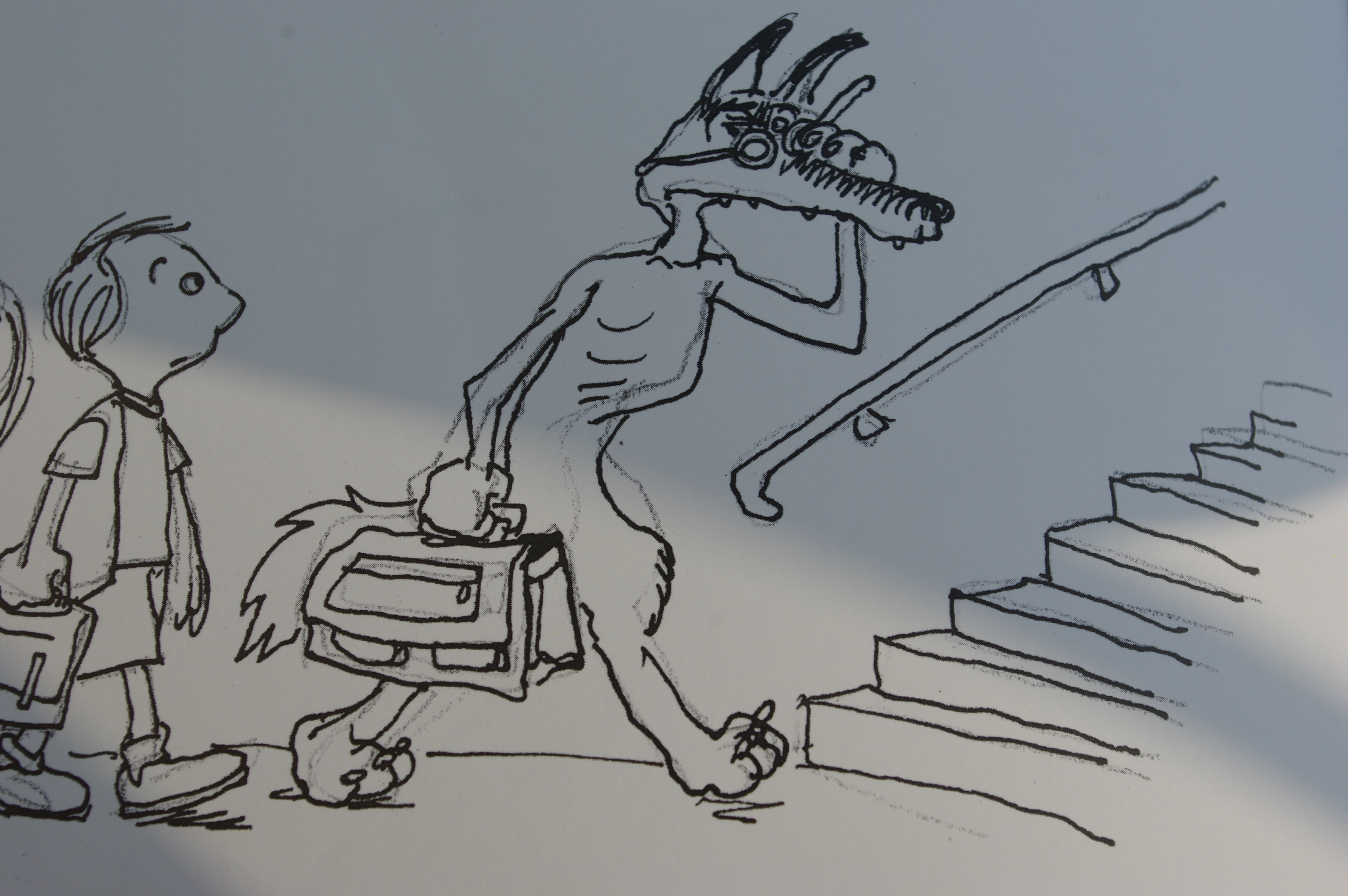 Žodžiu, vilkas bando išgąsdint kaimynus, ale tie tik juokias iš neišsilavinusio vilko arba iš viso nekreipia į jį dėmesio. Vilkas baisiausiai supyksta ir eina mokytis skaityti.