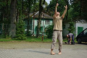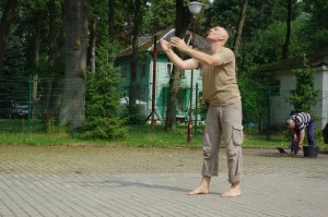 Mano vasaros biblitekoje yra tokia vasaros stovyklėlė vaikučiams. Stovyklėlės iniciatorius – Klaipėdos viešoji biblioteka – viską daro savo iniciatyva ir lėšomis. Kiekvieną dieną su vaikais dirba mokytojai savanoriai (taip Lietuvoje, pasirodo, irgi būna). O vieną dieną stovyklėlę aplankė nerealus žmogus – vienintelis Lietuvos mimas Aleksas Mažonas. Man ir mano klasiokėms jis žinomas iš mokyklos laikų, atsimenu, kaip buvom viename nerealiai nerealiame jo spektaklyje ir kaip jis savo žiūrove pasirinko mūsų klasiokę Auksę (atrodo, tai buvo Auksė) – visą spektaklį į ją žiūrėjo. Ir tikrai jis yra nerealus, jei kada turėsite galimybę, būtinai būtiniausiai nueikite į jo spektaklį.