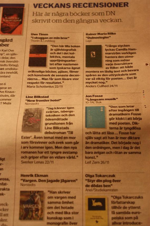 Beveik kiekvieni mano šeštadienio pusryčiai prasideda laikraščio skaitymu. Ir visada pradedu nuo dienraščio Dagens nyheter priedo “Boklördag” (Knygų šeštadienis).