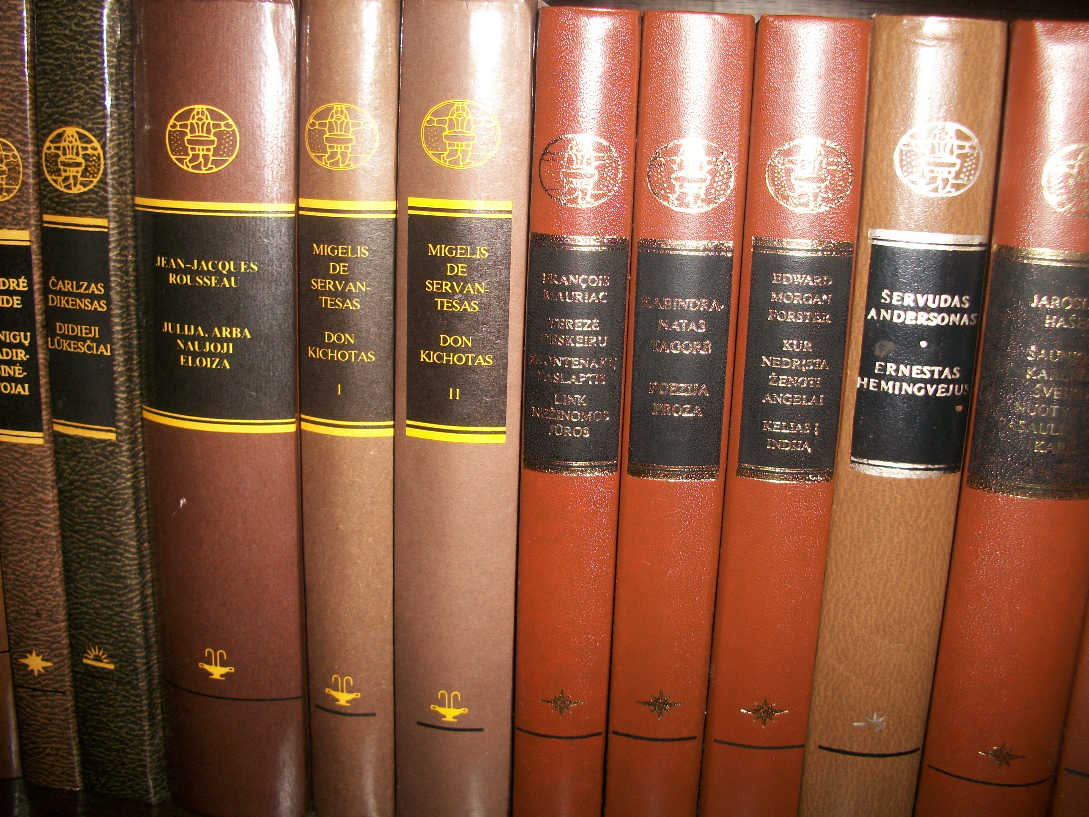 Mano mėgstamiausia knygų serija yra “Pasaulinės literatūros biblioteka”. Taip, taip ta rudoji. Pasmerkta serija, kuriai daug lemta rinkti dulkes nei būti skaitomai. Todėl man ji labiau yra “žiūrimiausia” knygų serija, o ne “mėgstamiausia”, nes nuo pat mažens iki dabar, nuvažiavus pas mamą, aš mėgstu atsistoti prie šitos serijos knygų lentynos, skaityti pavadinimus ant nugarėlių ir galvoti kažką panašaus: “Na, kas gi gali norėti šitai perskaityti? Šitos tikrai niekada neskaitysiu – kokia storybė (Gargantiua ir Pantagriuelis)! Kas čia toks? O, būtų įdomu šitą paskaityti (Karas ir taika)… kada nors”. Bet kartu ši serija yra ir išgelbėjusi – kai nereikėjo ieškoti Hemingvėjaus, Kafkos, Sinkevičiaus, jei neklystu ir Mickevičiaus.