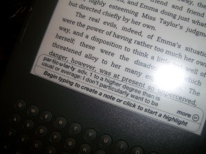 Labai ilgai svarsčiau, ar man labai reikia šito daikto, neturėjau rankose nė vieno gyvo pavyždžio laikiusi, dėl to nežinojau, ar man patiks ir ar nebus dovana paleista vėjais. Bet žinai, dar tik keletą miničių laikau šitą daiktą rankose, bet jau taip džiaugiuosi, taip džiaugiuosi, kad jei būtų valgomas, tai jau būčiau suvalgius (na ir palyginimas). Ir dabar man atrodo, kad tai yra tiesiog pats nuostabiausias daiktas angliškai skaitančioms žiurkėms, ypač toms, kurios šiaip nėra ypatingai geros anglų kalbos žinovės (aš) ir laikas nuo laiko turėtų pasižiūrėti į žodyną (jei tokį turi ir netingi to padaryti), nes Kindle turi savyje žodyną ir tereikia tik su kursorium užeiti ant žodžio ir tam pačiam ekrane žodis yra paaiškinamas. Super. Kaip būtų palengvėjęs mano ilgas ir sunkus Zadie Smith “White Teeth” skaitymas – nėra žodžių apsakyti.