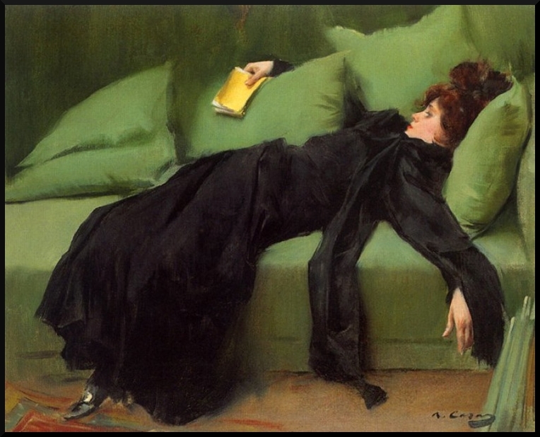 “Tų gražių jaunų knygas skaitančių moterų yra labai daug mene, ypač jos dažnos devynioliktojo amžiaus antroje pusėje. Skaitanti moteris sėdi tarsi namų angelas , tarsi ji būtų interjero dalis savo ramiuose buržuaziniuose namuose ”
