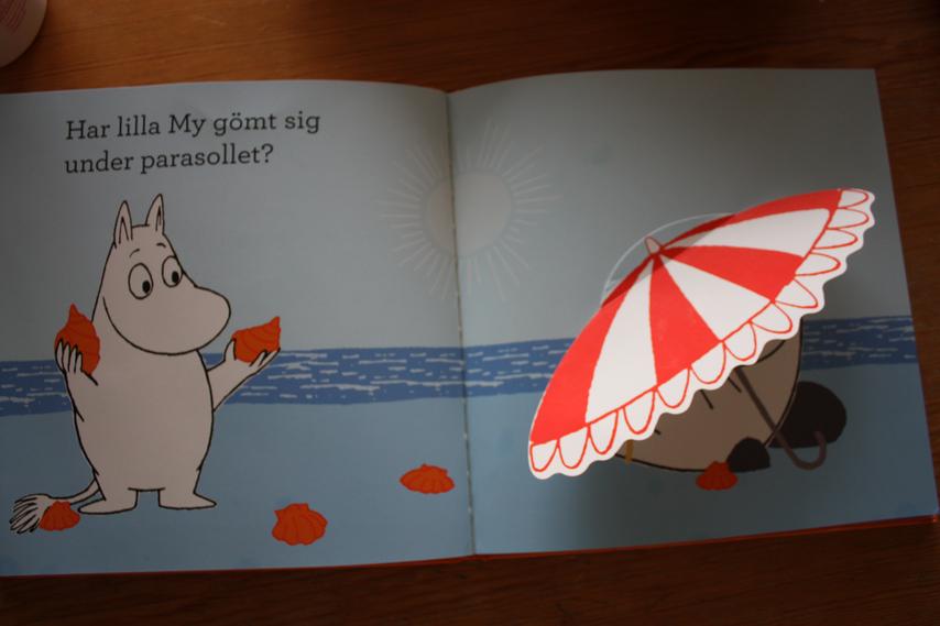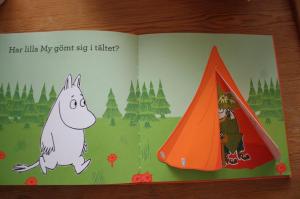 Viena mėgstamiausių knygelių yra apie tai, kaip Trolis Mumis ieškojo mažosios My. Tai aš vis skaitau “Ar mažoji My pasislėpė palapinėje?”. Tada žiogas atverčia, o aš turiu įsijautusiu balsu sakyti “Nee! Čia Mumis Tėtis/Snusmumrikas/ Panelė Snork ir t.t.”
