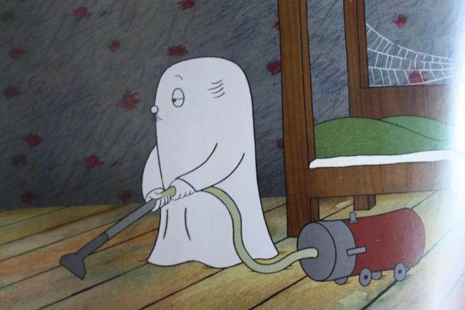 Čia Vaiduoklis tėtis tvarko namus prieš savo 384ąjį gimtadienį. Juk reikia apsikuopti prieš svečiams ateinant, išsiurbliuoti…