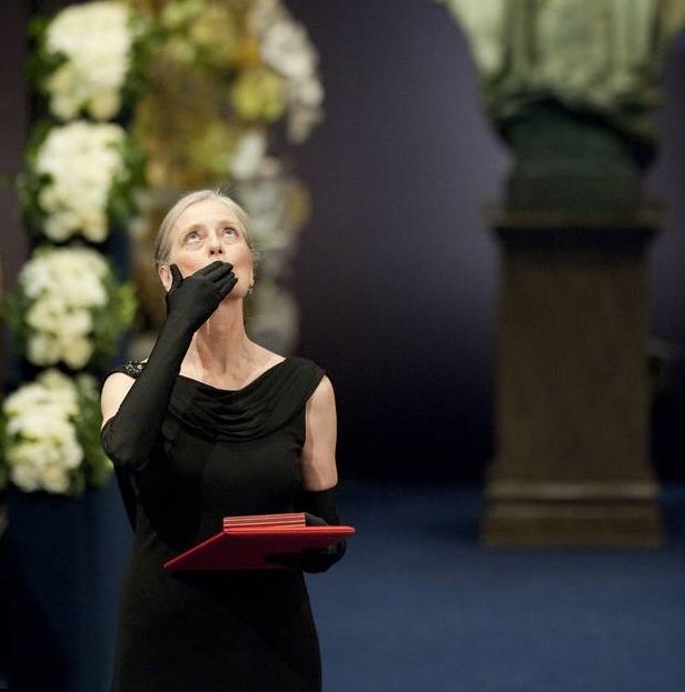Claudia Steiman siunčia bučinį savo vyrui Ralp Steinman, kuris mirė trys dienos iki Nobelio medicinos premijos paskelbimo. Ji vyro vardu paėmė medalį ir diplomą. (Apsiverkiau)