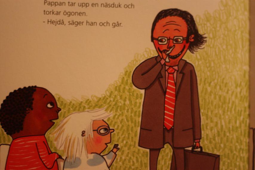 “Kodėl verkia tėtis?” (“Varför gråter pappan?”).Teksto autorė Skrivit: Kristina Murray Brodin, iliustravo “Bettina Johansson .