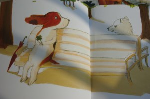 Linos Dūdaitės iliustracijas. Knygų mugėj savo kukuliams nupirkau dvi knygutes, o jų pirkimą nulėmė nuostabios iliustracijos, į kurias rankos pačios tiesias. Gražios spalvingos ir kiek jose veiksmo – tikrai yra ką su kukuliu aptarti – kas ką beveikiąs, kokios ausys, akys, rūbai ir spalvos. Kur plaukia laivai, kokios žuvys paveiksluose ir vazonėliai su rateliais, kodėl zuikis pavargęs, o voveraitė “atsipūtus”, ar skanūs pyragėliai su vyšniom ir senelės žemuogės ant smilgelės? Dvi gražios knygelės: Luis Sepulveda “Apie žuvėdrą ir katiną, kuris išmokė ją skraidyti” ir Gintaro Beresnevičiaus “Kaukų šeimynėlė”. Noris skaityti ir skaityti tuos paveikslėlius.