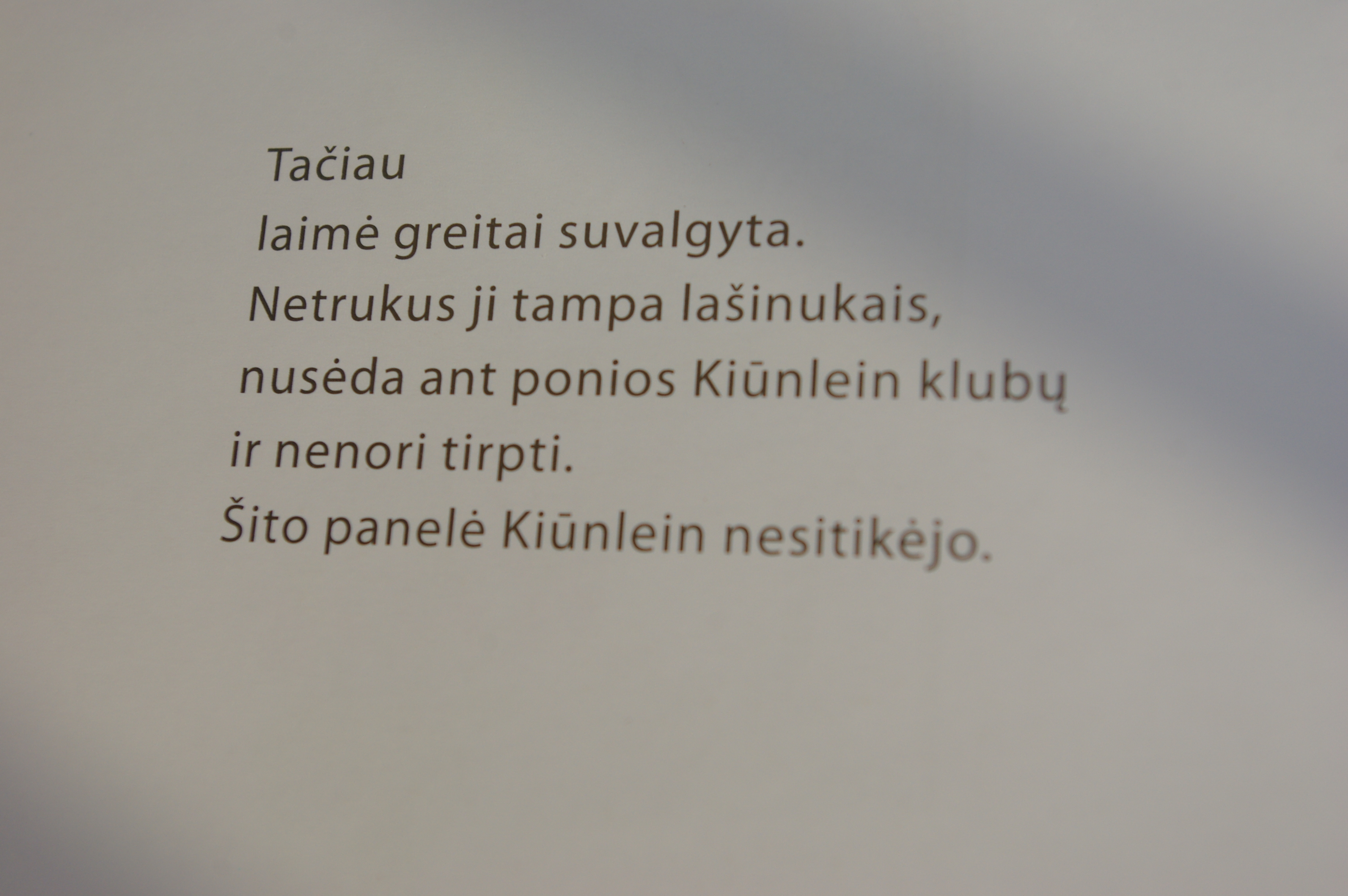 Dar viena smagi knygelė, kuri prasideda du kartus: iš prieko ir iš galo. Ir susitinka knygos viduryje. Ponas Jaspersas ir panelė Kiūnlein ieško laimės. Visur, kur tik įmanoma, kur jie įsivaizduoja ją rasti. Niekaip neranda, praranda viltį ir… susitinka knygos viduryje 🙂