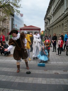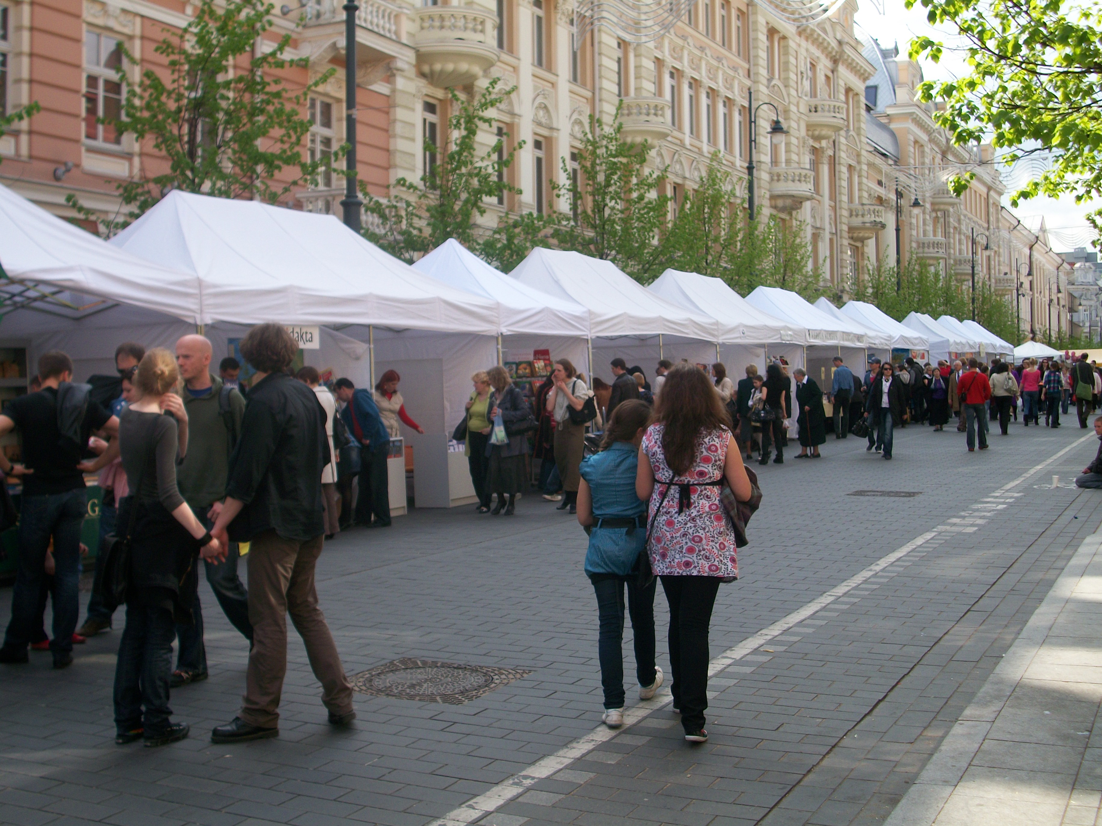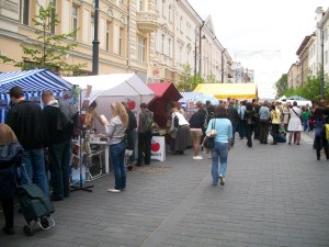Vilnius švenčia Europos dieną. 1950 m. gegužės 9 d. Prancūzijos užsienio reikalų ministras Reoberas Šumanas iškėlė Europos integracijos idėją. Tad šią dieną švenčiamas Europos Sąjungos gimtadienis. Kadangi Gedimino prospekte vyksta mugė ir visokie renginiai, o be to, pagaliau atėjo pavasaris, tai mes su šeimyna išsirengėm pasivaikščioti, tuo labiau, kad mugėje dalyvavo ir leidyklos. Tiesa, leidyklų palapinės labai jam man priminė turgų, bet, na, svarbu dalyvavo ir buvo knygų neblogom kainom. Keletą įsigijome kukuliams ir porą (tik!) – sau. Keletas vaizdelių iš mugės.