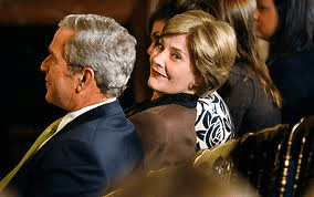 Pabaigai dvi (tikrosios, o ne išgalvotos ) Laura Bush citatos: “I would never do anything to undermine my husband’s point of view. ” ir “We always get up about 5:30, and George gets up and goes in and gets the coffee and brings it to me, and that’s been our ritual since we got married. And we read the newspapers in bed and drink coffee for about an hour probably, read our briefing papers. ”