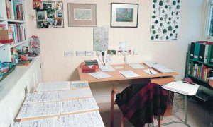 Kai koks nors brangus žmogus kur nors išvažiuodavo, prašydavau, kad aprašytų (tikruose laiškuose), kaip jis gyvena, kokia jo aplinka, koks jo stalas. Kad galėčiau geriau įsivaizduoti jo naują gyvenimą, naują “tvirtovę”. Ir štai netikėtai aptikau seriją straipsnelių apie rašytojų darbo kambarius arba kitas vietas, kur jie rašo. Mintyse iš pasitenkinimo apsilaižiau kaip katinas – neįtikėtinai įdomu!!! Ir mintyse vis sukasi “A room of one’s own”, nors čia gal ir nelabai į temą, nors gal ir į temą.