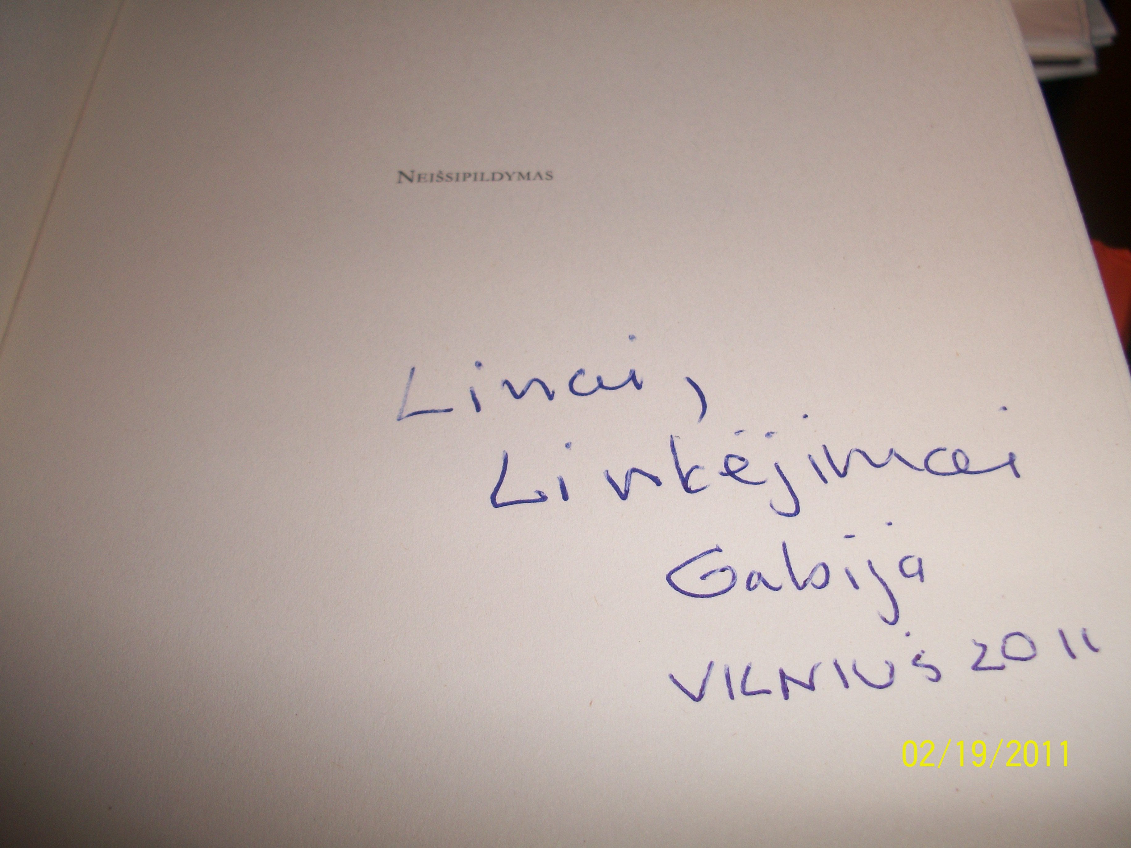 Na, ir dar du susitikimai tądien buvo. Pirmasis, pilnoje prisigrūdusioje didžiausioje salėje su K.Sabaliauskaite, antrasis mažesnėje, bet taip pat pilnoje su G.Grušaite. Susitikimo su Sabaliauskaite metu, jos antros knygos dalies jau nebebuvo pirkti. Kai aš pirkau sau, leidykla jau buvo pajutusi, kad knyga slysta iš rankų greičiau nei tikėtasi, ir buvo ją pabranginusi iki beveik knygynų kainos.