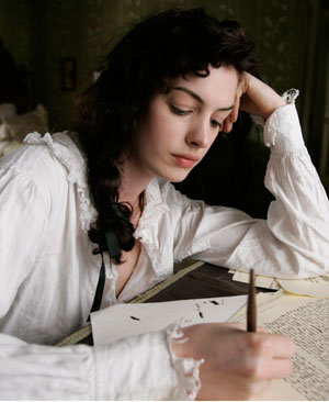 Jau visą savaitę LTV reklamuoja šeštadienio filmą, kuris, na, tiesiogiai nededikuojamas, bet šiaip jau skirtas knygų žiurkėms, o ypatingai Giedrei. Taigi, šeštadienį 21:00, žiūrėkite filmą apie Jane Austen Maištingoji Jane (Becoming Jane). Apie tai, kaip pagrindinė aktorė Anne Hathaway ruošėsi vaidmeniui ir trailer. Kaip noriu pažiūrėti, bent filmiškai nebebūsiu Jane Austen virgin, nes vis dar esu 🙂