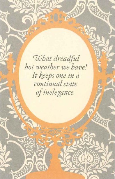 Niekas geriau nenusako šios dienos kaip šita Jane Austen citata. Man labai patinka angliškas išsireiškimas Heat wave- karščio banga. Nusako to būseną, kai kaitra kone paralyžuojanti, kai atrodo jog viskas slenka kažkai lėtai, lyg būtum po vandeniu, kai taip karšta, kad net sunku kvėpuoti. Karščio banga.