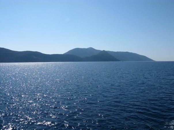 "The sea was a pure veronica blue, stretching like a silk carpet across to the shadowy wall of mountains on the mainland to the west. These mountains reverberated away south, fifty or sixty miles right down to the horizon, under the totally uncontaminated sky. It was a blue world, vast and stupendously manless..." J.Fowles "The Magus"