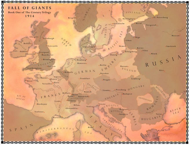 Šį kartą – XX a. pradžia, laikotarpis prieš pirmąjį pasaulinį karą, karo metai ir pokaris. Pasaulis ant didelių permainų slenksčio, ypač klasine, socialine tvarka. Knygos pradžioje dar yra didikai ir tarnai – kaip visiškai atskiri pasauliai, o knygos pabaigoje jų socialinis statusas ir teisės jau visai kitokie. Kiek nuobodokas man buvo detalus revolikucijos Rusijoje pavaizdavimas – visokie Lenino revoliucijos planai ir tt., bet šiaip, kaip visada, sužinojau /prisiminiau daug istorinių dalykų, to meto politikos užkulisių ir šiaip visokių įdomių to meto aplinkybių.