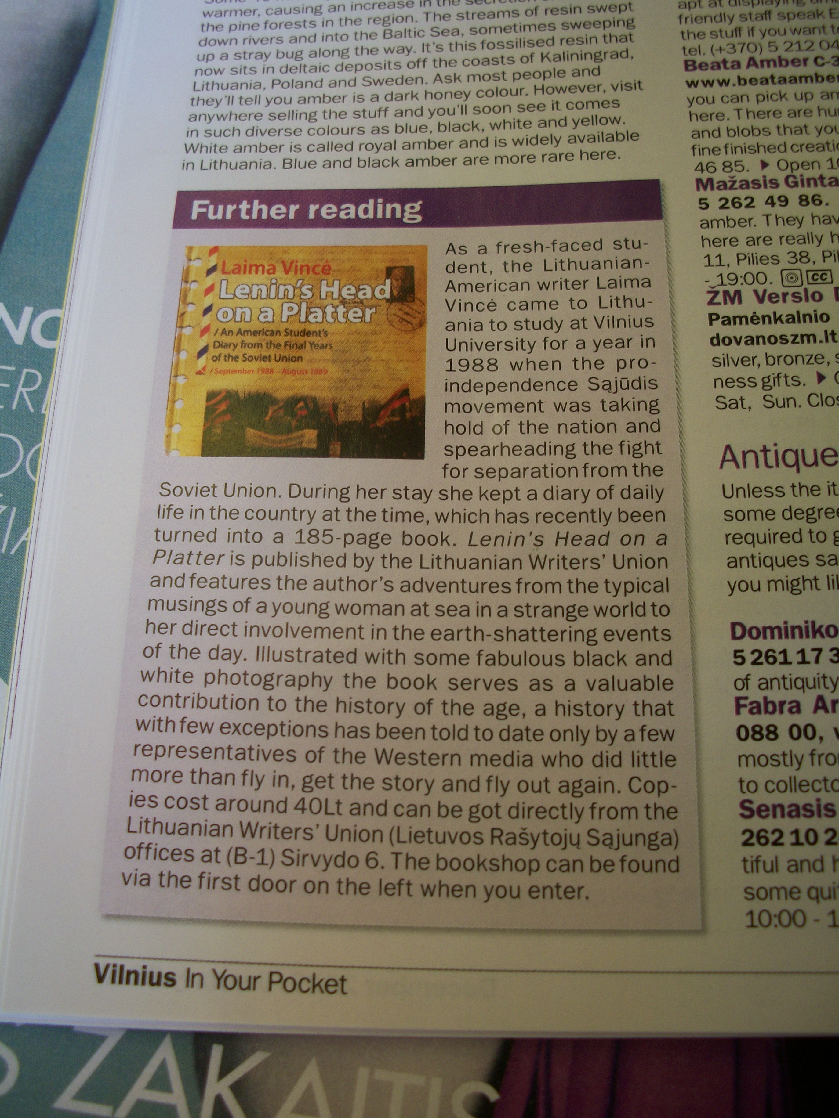 O jeigu nurit prisimint nepriklausomybės ir blokados jausmus, tą niekada nebepasikartosiantį nepriklausomybės troškimo ir vienybės jausmą, paskaitykit knygą. Manau, labiausiai objektyvią, poetiškai nešališką. Paskaitykit apie “iš kur mergaitei tiek drąsos” apskritai ten (SSRS) atvažiuoti, bei lakstyti be leidimo iš Vilniaus į visur, kur įmanoma. Įsivaizduoju, kad tai vienas nepamirštamiausių jaunystės laikmečių, keisčiausių jausmų ir išgyvenimų dienoraštis. O man vis tiek labiausiai akyse stovi ta bespalvybė ir paštu iš Amerikos gautas minkštas rožinis angoros megztukas – tik kur tokį nešioti socialistinėj respublikoj?