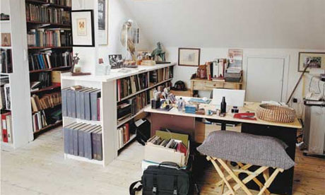 Kai koks nors brangus žmogus kur nors išvažiuodavo, prašydavau, kad aprašytų (tikruose laiškuose), kaip jis gyvena, kokia jo aplinka, koks jo stalas. Kad galėčiau geriau įsivaizduoti jo naują gyvenimą, naują “tvirtovę”. Ir štai netikėtai aptikau seriją straipsnelių apie rašytojų darbo kambarius arba kitas vietas, kur jie rašo. Mintyse iš pasitenkinimo apsilaižiau kaip katinas – neįtikėtinai įdomu!!! Ir mintyse vis sukasi “A room of one’s own”, nors čia gal ir nelabai į temą, nors gal ir į temą.