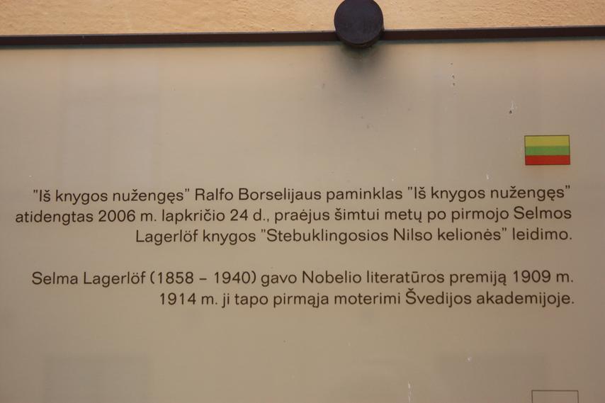 Prie skulptūrėlės Nilsui kabo šita lentelė